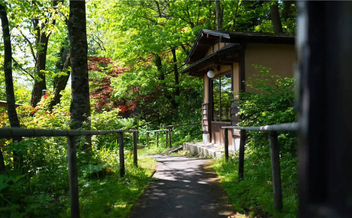 The Ohnuma Garden is a beautiful natural space featuring the private open-air bath, "Mori no Yu." Surrounded by lush greenery, this serene garden offers stunning views throughout the year, from cherry blossoms in spring to snow-covered landscapes in winter. It's the perfect place to unwind and enjoy the peaceful harmony of nature.
