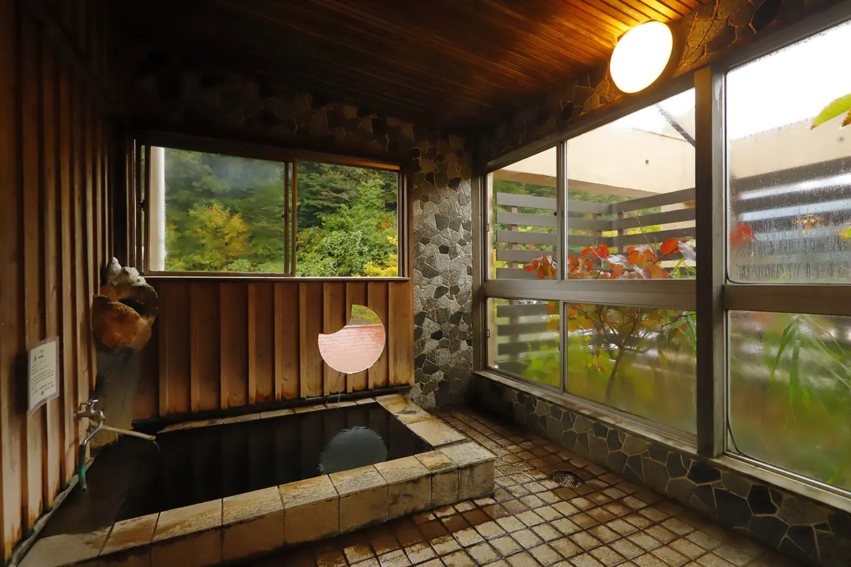 This cozy private bath, sourced from the same spring as the Tennyo Bath, is ideal for solo relaxation. The bath is compact but perfect for unwinding, and is also accessible for guests who may require assistance. The warm water is sure to bring a comforting glow to both your body and spirit.