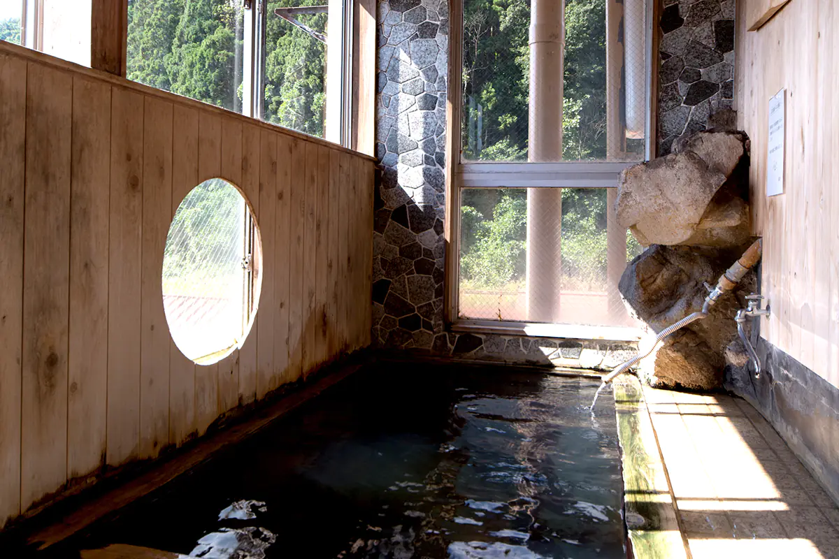 The Karatake no Yu, a sodium bicarbonate and chloride spring, is a shared source used by several inns in the Higashi-Naruko Onsen area. Clear in color with a mild salt content, it offers a soft yet invigorating soak, leaving the body feeling light and refreshed. Like our private source, this spring softens the skin’s surface and helps to remove impurities, but the added salt provides an extra benefit: it coats the skin, preserving heat and enhancing the post-bath warming effect. With a slightly alkaline pH of 7.4, it's ideal for those seeking to improve skin health. This spring is featured in Yakushi Sennin-buro, Ishiwari no Yu, and the private outdoor bath Mori no Yu.
